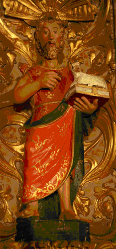 São João aparece representado sob duas formas: um menino a brincar com um cordeiro, ou um adulto cingido por uma pele de carneiro – trajo dos profetas extáticos (com períodos de êxtase) e emblema dos Essénios (sectários judeus cuja doutrina se assemelhava à dos primeiros cristãos).