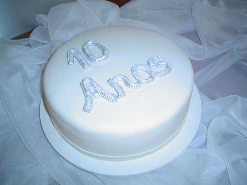 Como já fazes 10 aninhos, a avó decidiu não pôr aqui no blog uma ilustração com bonecos ou balões. Sei que não irias gostar. Estás a crescer, Soli. Dez aninhos é uma década! Por isso, resolvi colocar esta foto. É um bolo menos infantil.